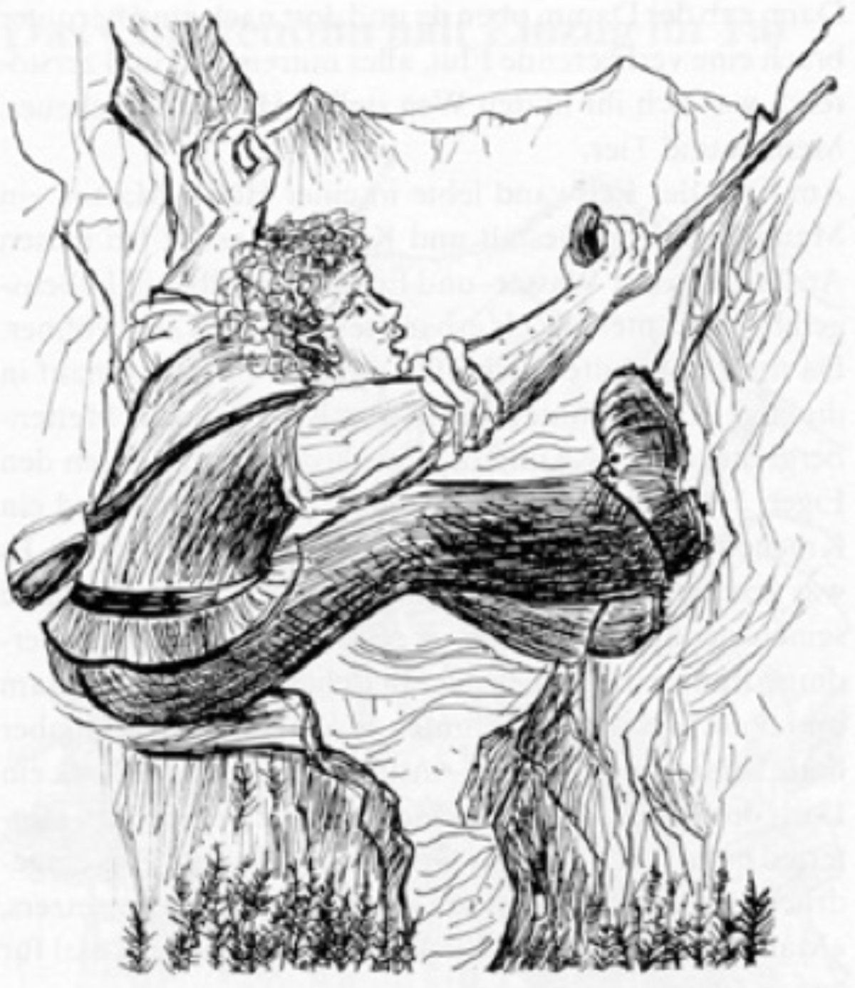 Au pied de la paroi rocheuse vivait Martin, un homme de grande stature et d’une force gigantesque. Il était lui-même en danger de mort lors des éboulements des masses d'eau et de glace. Il fallait trouver un remède… Il a grimpé dans l'étroite brèche, s'est appuyé le dos contre le côté du Mettenberg, et a appuyé ses pieds et son bâton contre l'Eiger.
